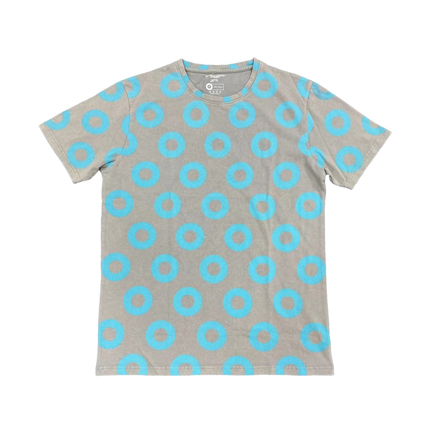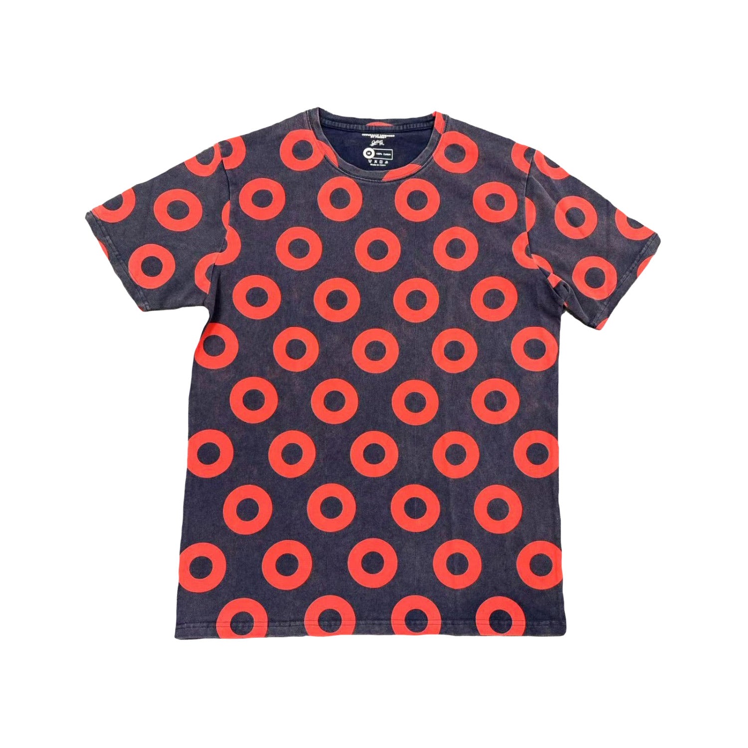Fully custom cut + sewn 100% cotton acid washed tee, with a relaxed fit and super soft finish, with all over Fishman Donut Pattern.