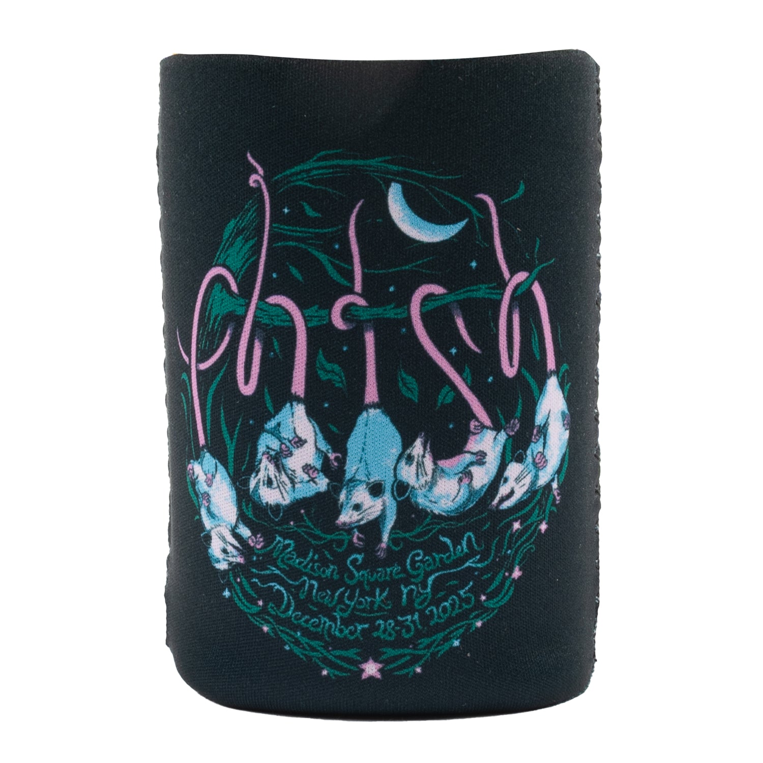 Official can cooler from Phish's New Year's Eve 2025 shows at Madison Square Garden featuring "Hangin Possum" artwork.