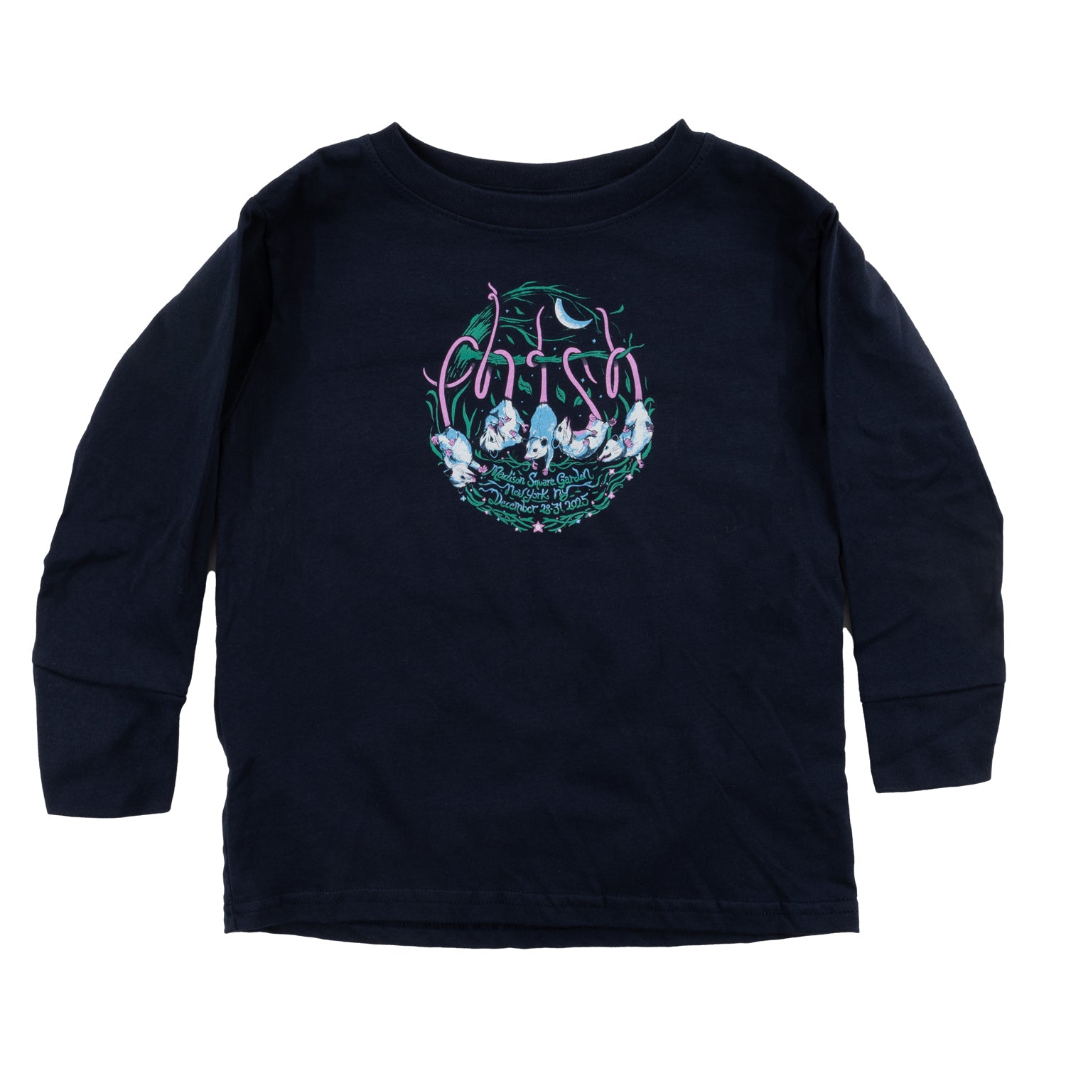 Official Kid's Tee Shirt from Phish's New Year's Shows at Madison Square Garden December 28 - 31, 2025. Features Hangin' Possum Design
