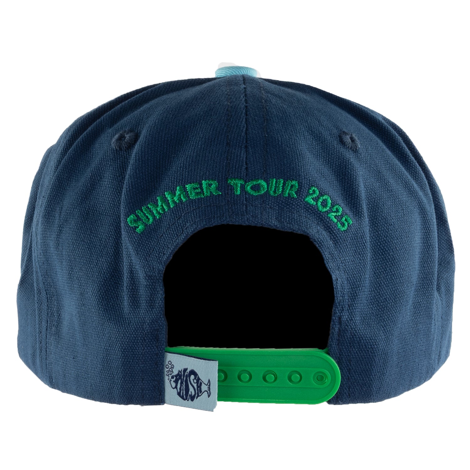 Featuring Linklater Design in Green and Blue as well as summer tour 2025 embroidery, this hat features an Unstructured Snapback, with green under brim to reduce glare and a pliable brim for shaping the look you want and adjustable snapback closure. 100% washed cotton, medium crown height.