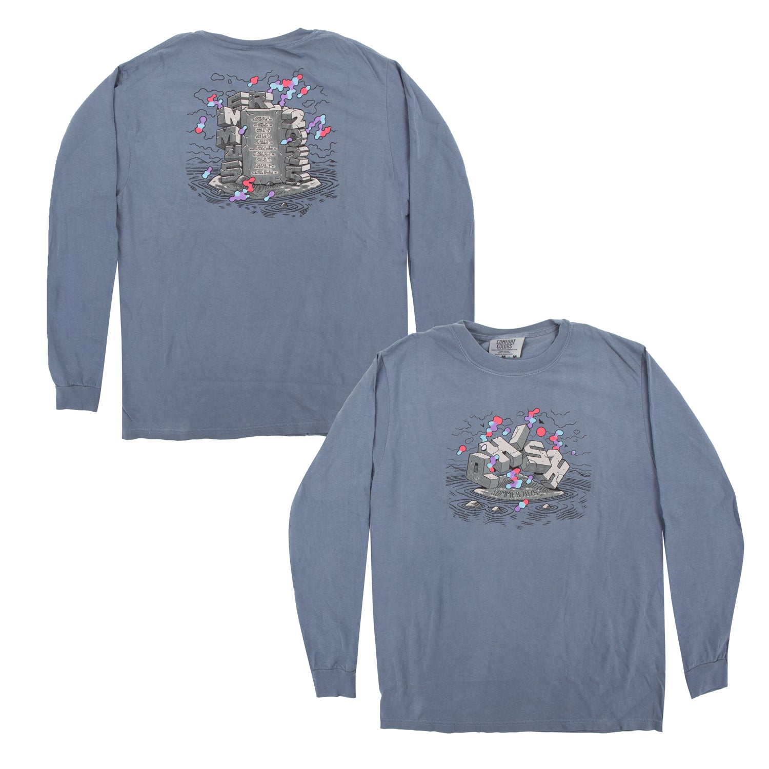 Official Long Sleeve Tee from Phish's Summer Tour 2025 printed on a Comfort Colors shirt.
