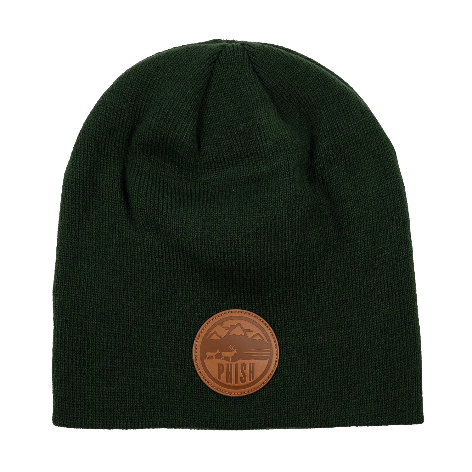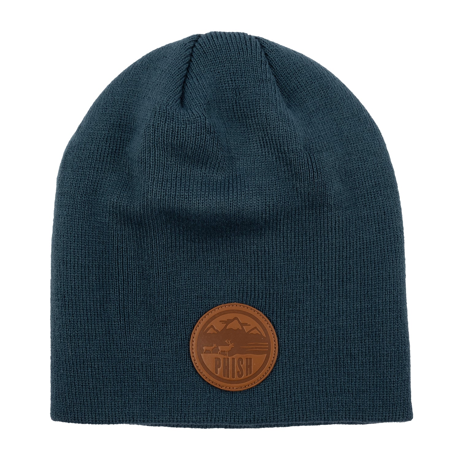 Woven acrylic 9 beanie with leather debossed Phish patch.