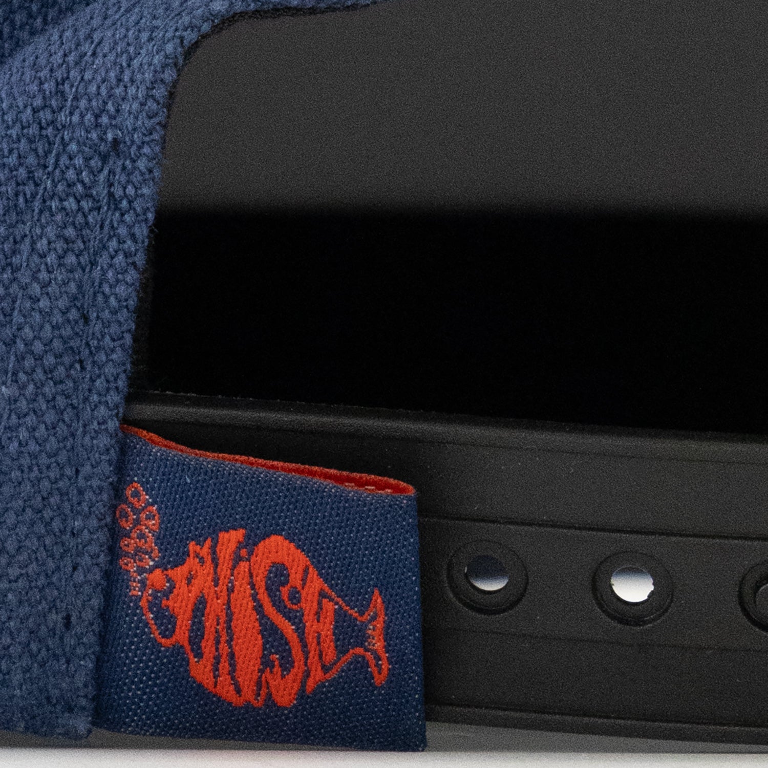 Mid-profile, somewhat structured hat made of brushed + textured cotton. Five panels, foldable bill, snapback closure with Phish logo label. One size fits most.