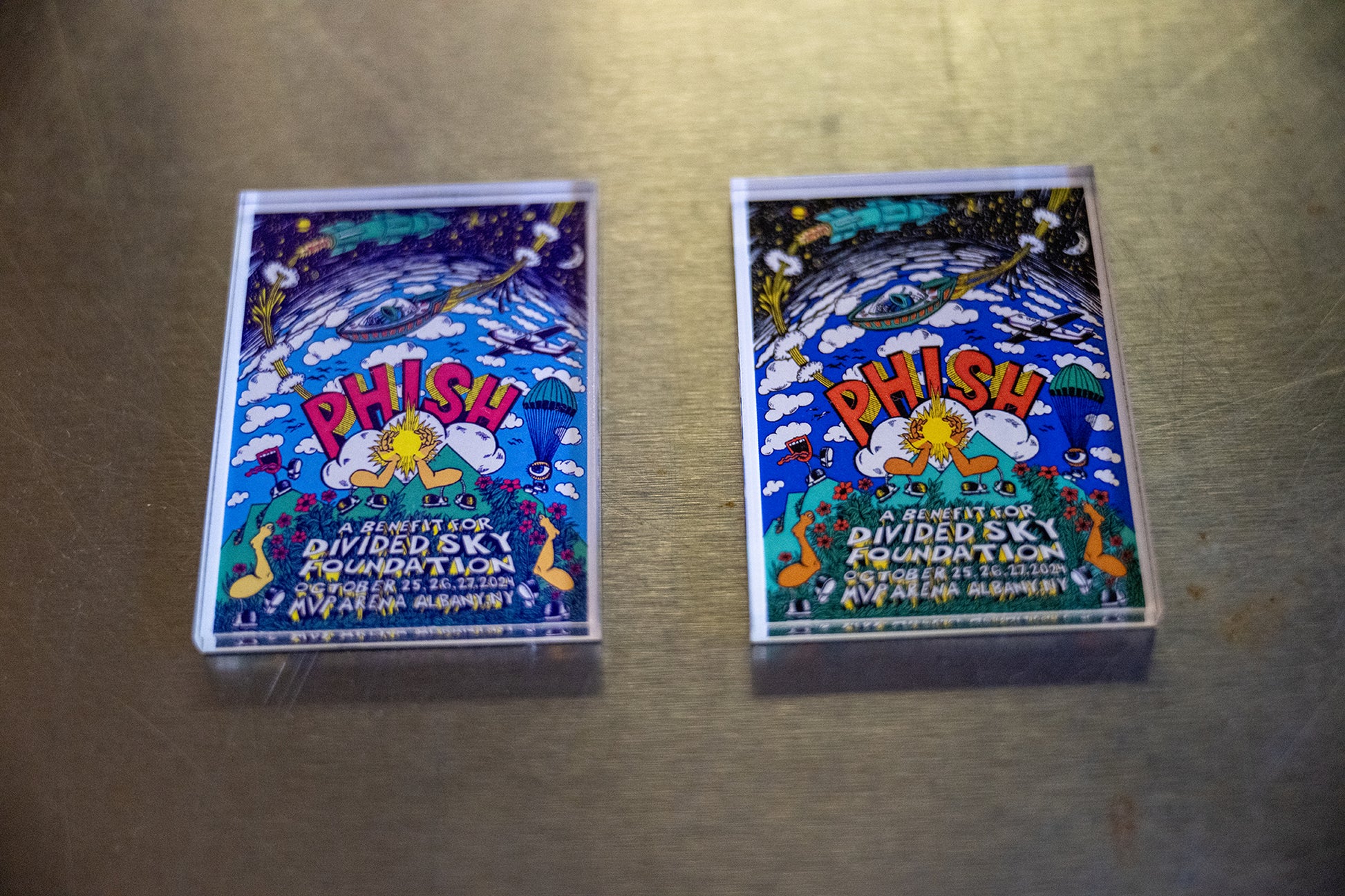 100% of net proceeds will benefit Divided Sky Foundation. From Phish's October run October 25-27, 2024 in Albany, NY. USA Made, Lucite topped magnets. Each magnet measures 3 in width.