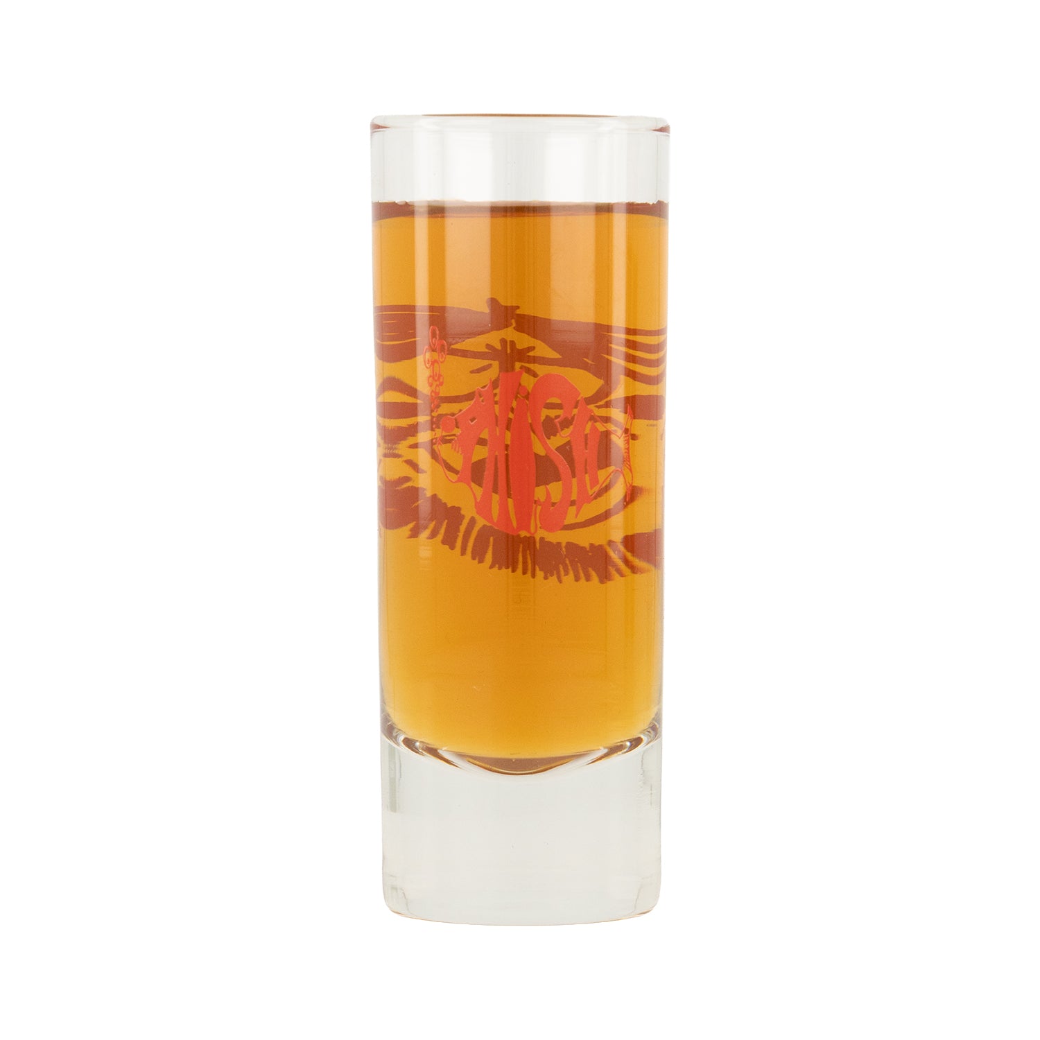 The 2.5 ounce cordial shooter glass with heavy base and Pollock Phish Characters on each. Hand washing is recommended.