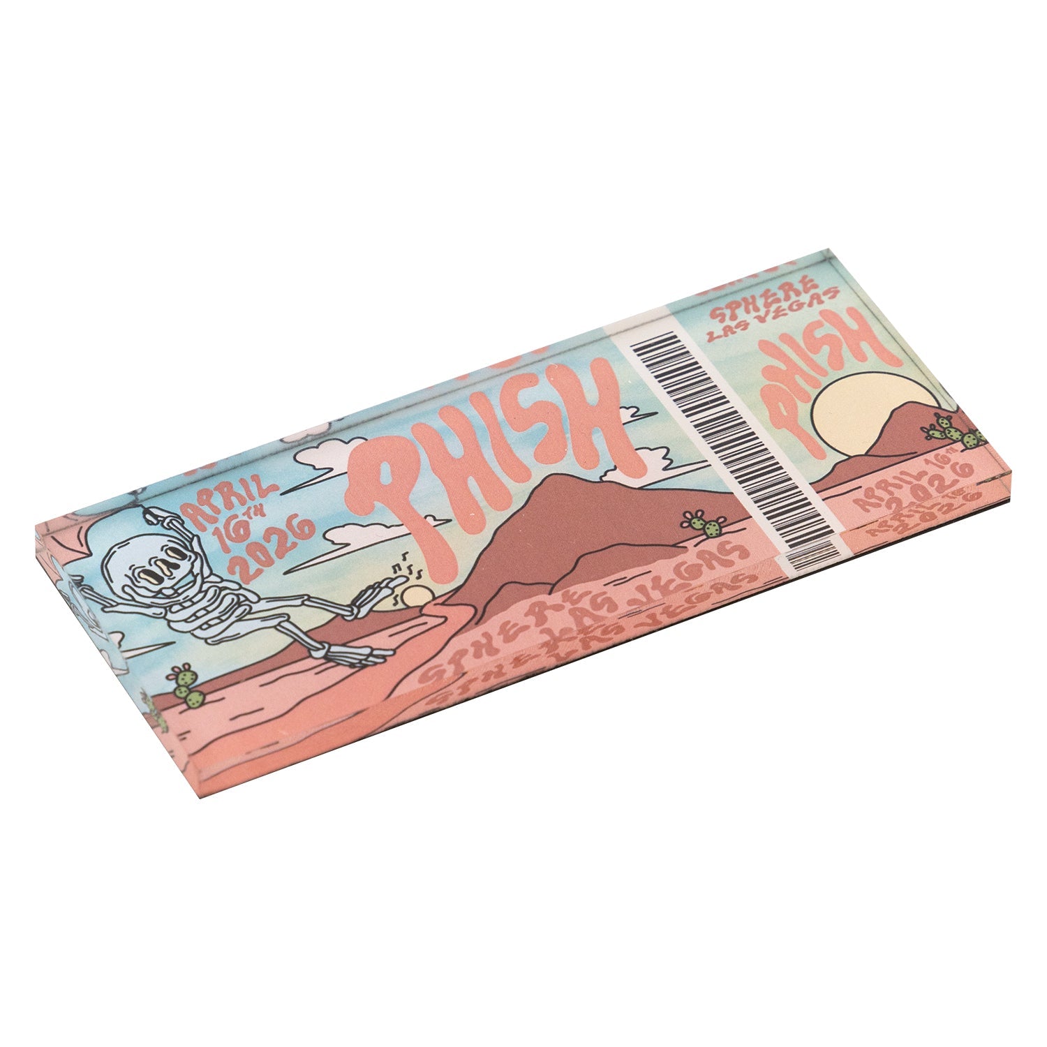 Collect all nine different ticket magnets, designed by Emma Atterbury. USA made, thick cut 1/4" lucite top to match your other ticket magnets, featuring a unique design for each show.