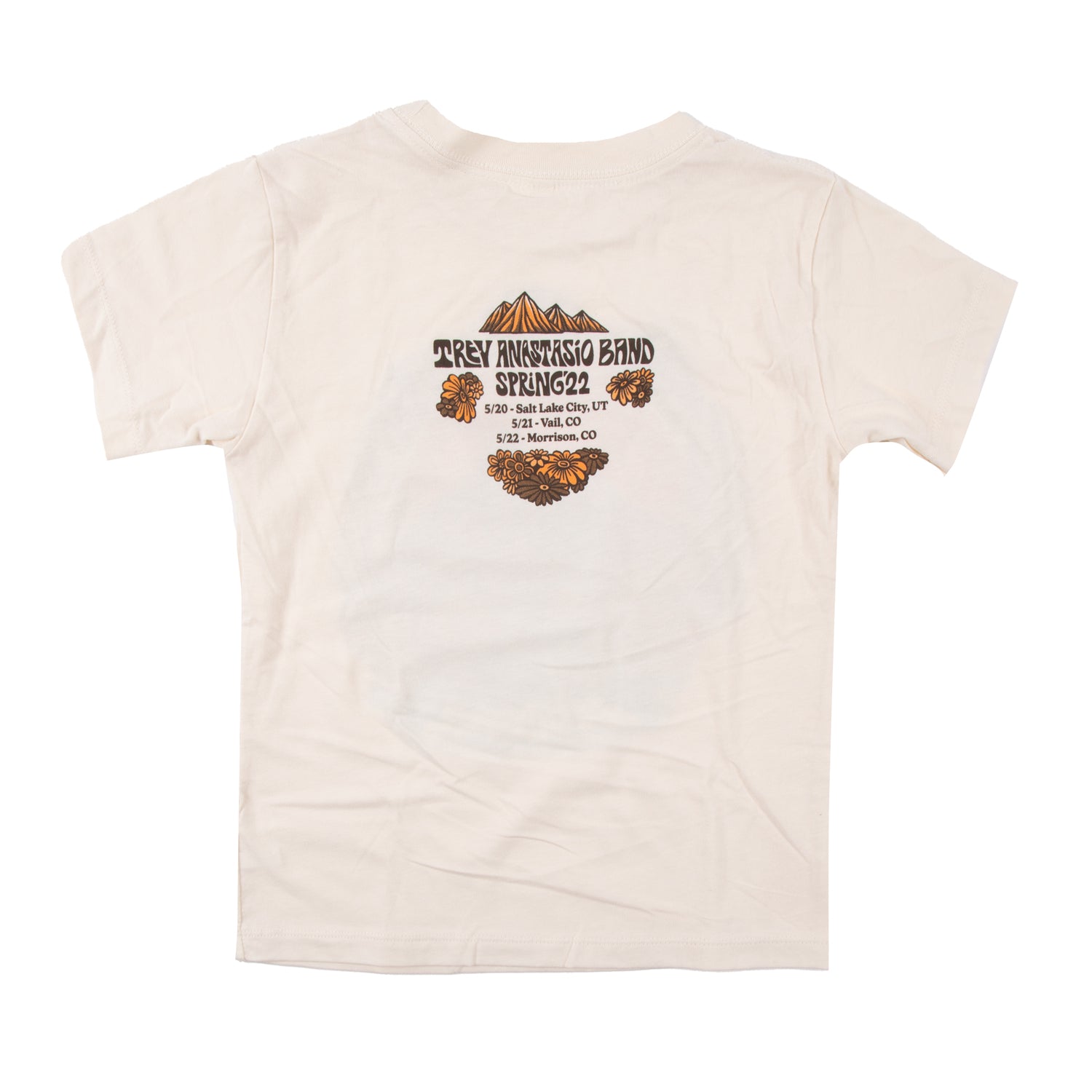 Kid's natural t-shirt featuring tour dates and artwork from the Trey Anastasio Band 2022 Tour.